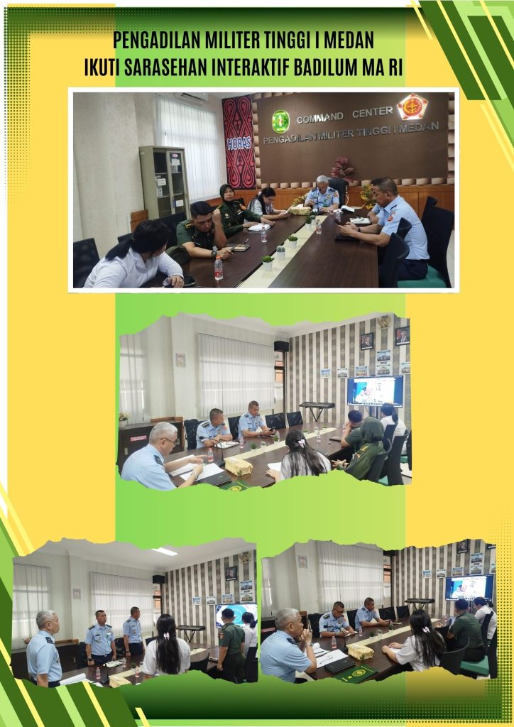 Pertemuan secara virtual ini diikuti oleh satuan kerja dalam lingkup Badan Peradilan Umum, Syariah, dan Militer. Melalui keikutsertaan dalam kegiatan ini, diharapkan Pengadilan Militer Tinggi I Medan dapat terus meningkatkan profesionalisme dan pemahaman terhadap dinamika hukum dan peradilan untuk mendukung pelaksanaan tugas peradilan militer.