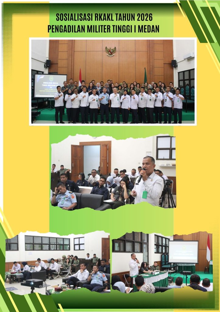 Medan – Pengadilan Militer Tinggi I Medan melaksanakan Sosialisasi Rencana Kerja dan Anggaran Kementerian Negara/ Lembaga (RKAKL) Tahun Anggaran 2026 yang dipaparkan oleh Sekretaris, Kolonel Chk Anwar, S.H., M.H., pada Rabu (14/01/2026) bertempat di Ruang Sidang Candra Dilmilti I Medan.