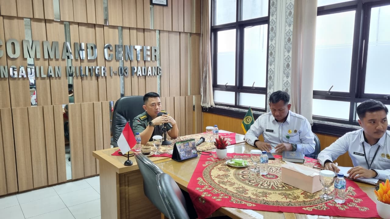 Padang, Pengadilan Militer Tinggi I Medan melaksanakan Koordinasi sekaligus Pembinaan tentang Percepatan Penyelesaian Perkara di Jajaran Pengadilan Militer Tinggi I Medan, Panitera Pengadilan Militer Tinggi I Medan Kolonel Chk Rendra Apri Sadewa, SH., MH. menyampaikan matrik persentase proses penyelesaian perkara di Pengadilan Tingkat Pertama di jajaran Dilmilti I Medan pada kegiatan pembinaan ini juga di laksanakan secara luring dan daring.
